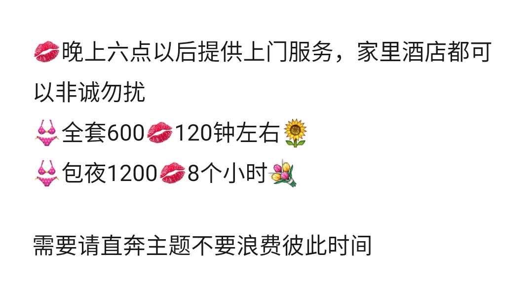 [xinxitop]提示信息[/xinxitop] 【寻欢时间】:2020年11月05日 【寻欢地点】:广东省珠海市香洲区唐家湾镇 【信息来源】:亲身体验 【服务项目】:鸳鸯浴,漫游,胸推,69式,冰火,口活,爱爱,制服诱惑 【妹妹数量】:1 【环境设备】:好 【营业时间】:上午11点到晚上12点 【价格一览】:400包房费 【安全评估】:100 【服务星级】:★★★★★ 【重点推荐】:小逼人温柔靠谱,也比较配合 【联系方式】: 为了鼓励会员积极回复验证,只要原帖没聊天截图的,参与验证回复聊天截图都奖励100金币。 【寻欢细节】:这妹子骚逼水很多,插进去很紧致。就像是处女异养,另外,下面很粉嫩,一看就不是那种老逼,很嫩很嫩的 【附带照片】: