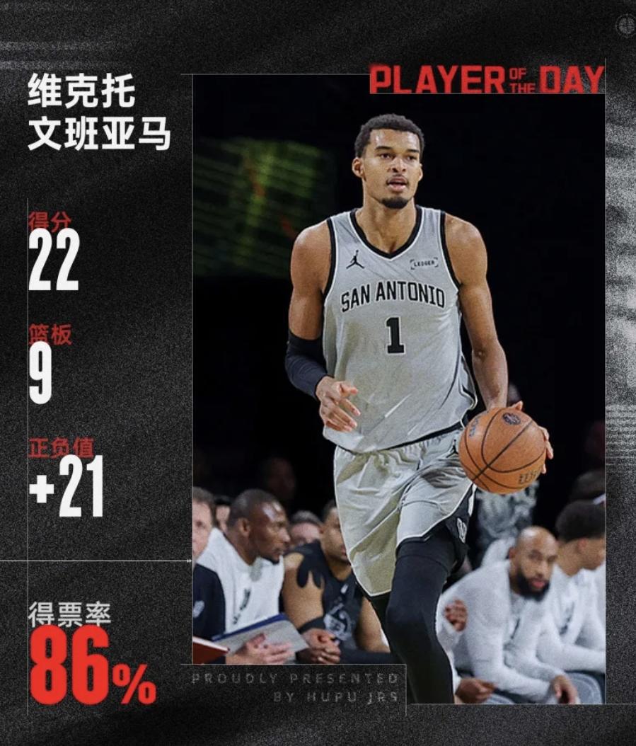 [|篮球赛事] 超模外星人!维克托-文班亚马当选今日JRs评选最佳球员 |