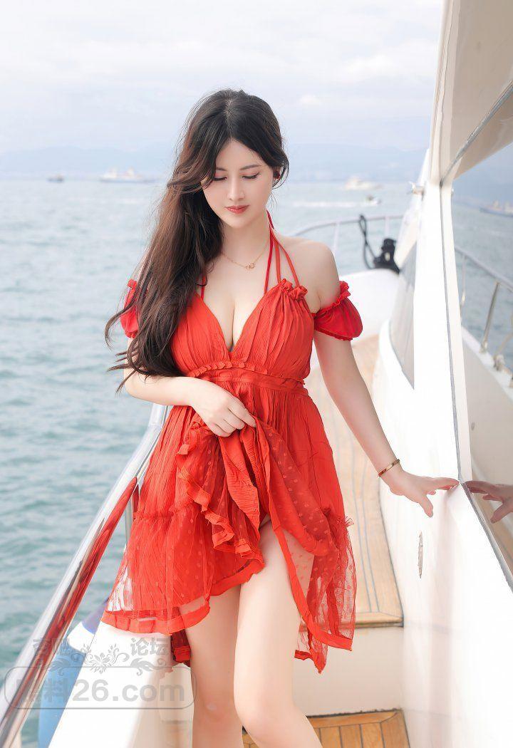 成熟美女郎诗诗和土豪游艇出海红色比基尼色诱