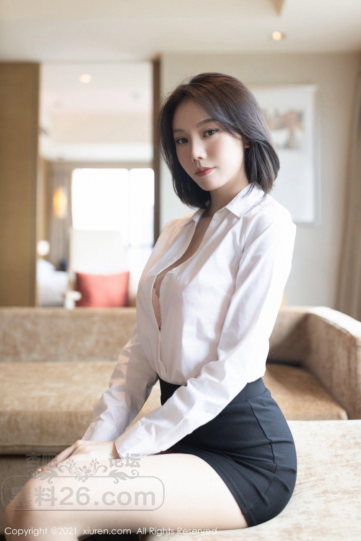 [美腿翘臀] 模特安然Maleah白衬衣配黑短裙职业装半脱露粉色内衣诱惑写真【50P】 |