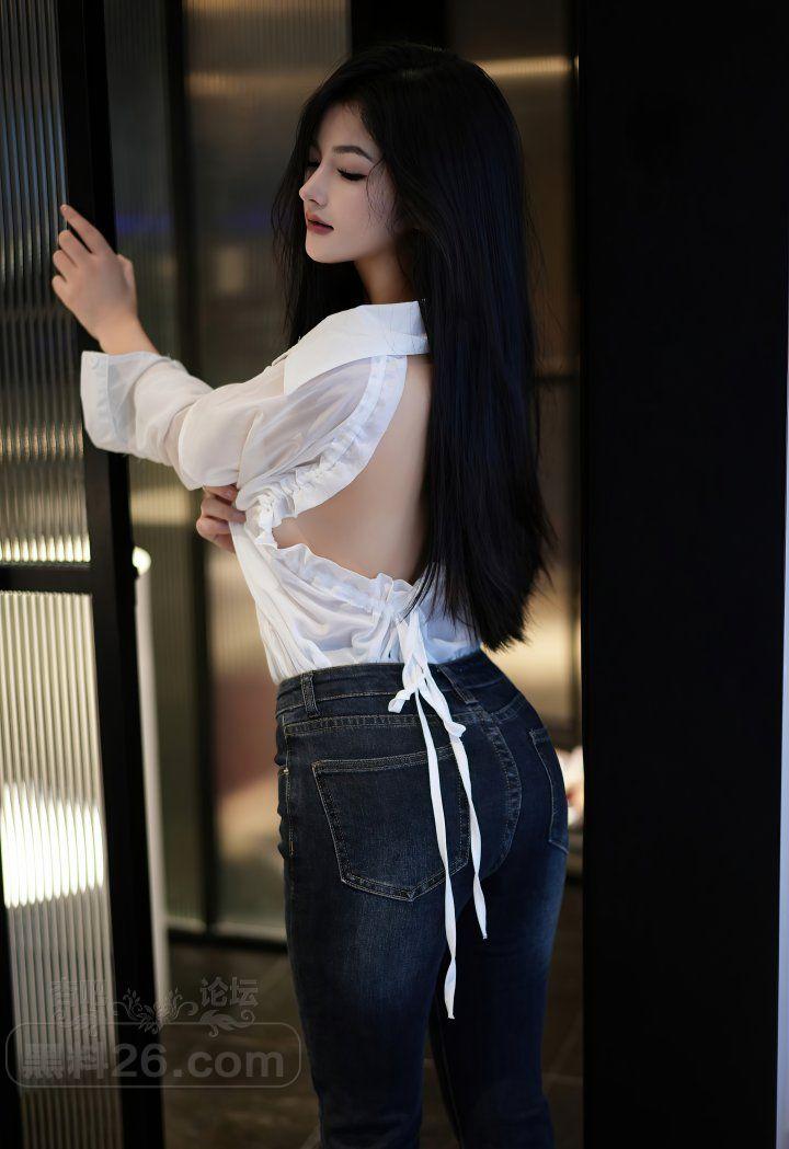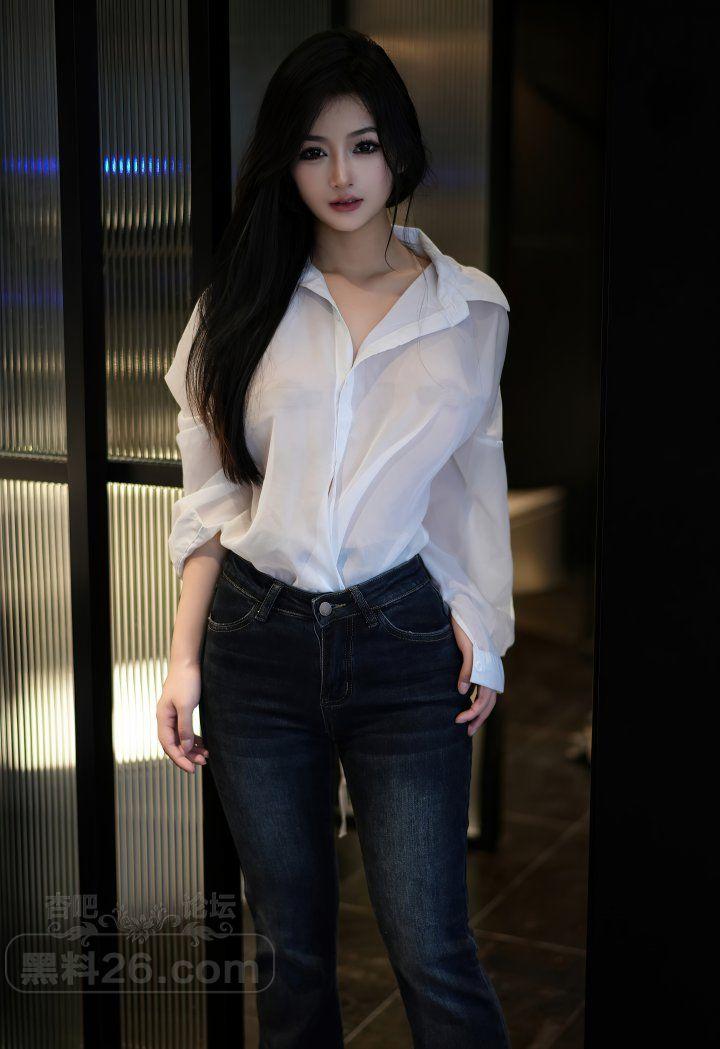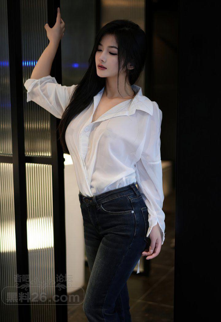 谭小灵白色长袖衬衫牛仔紧身裤里丝美腿让人心潮澎湃【20P】