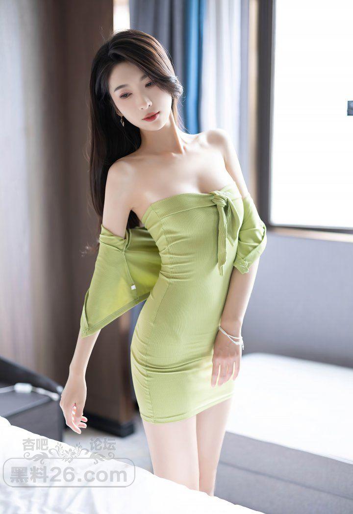 性感女郎林乐一绿色包臀裙大床上光洁美腿色诱【20P】