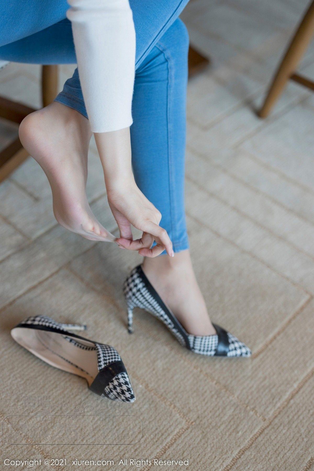 [美腿翘臀] 模特文芮jeninfer私房脱紧身牛仔裤露精致蓝色内衣迷人诱惑写真【30P】 |