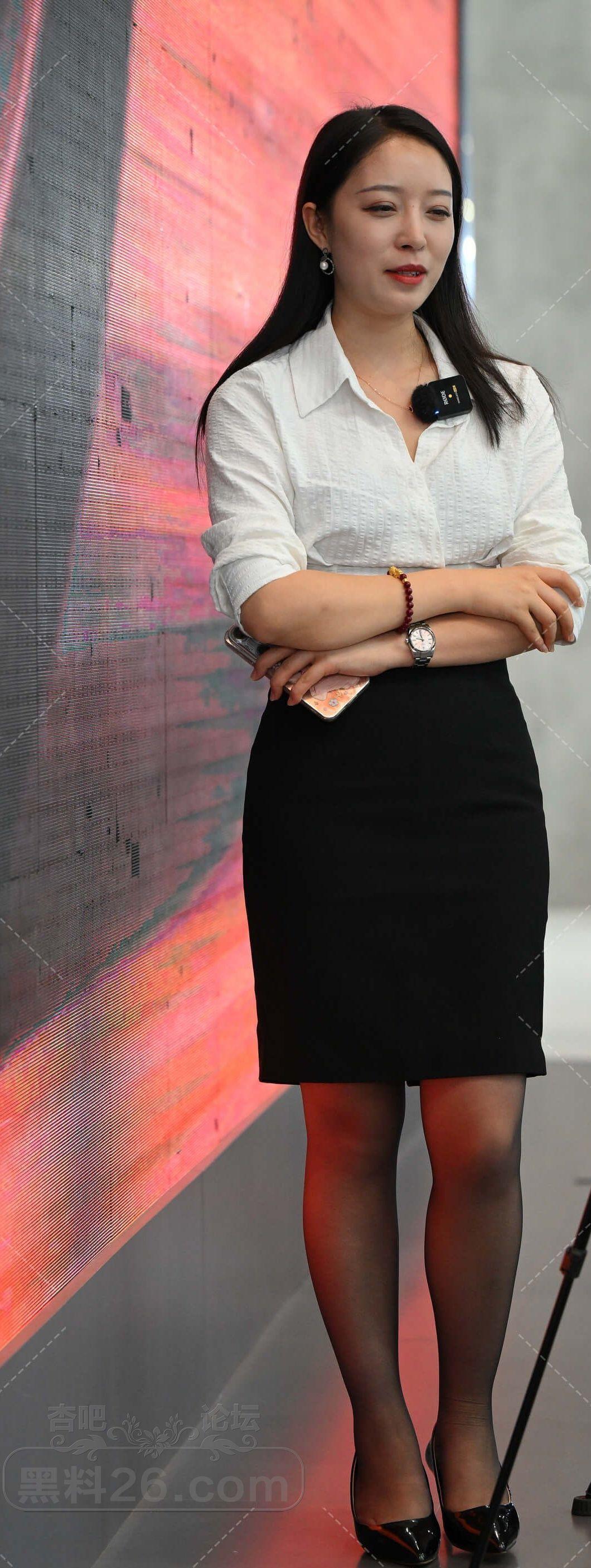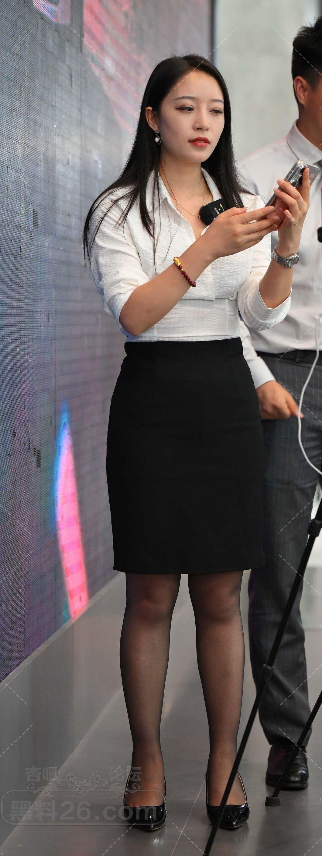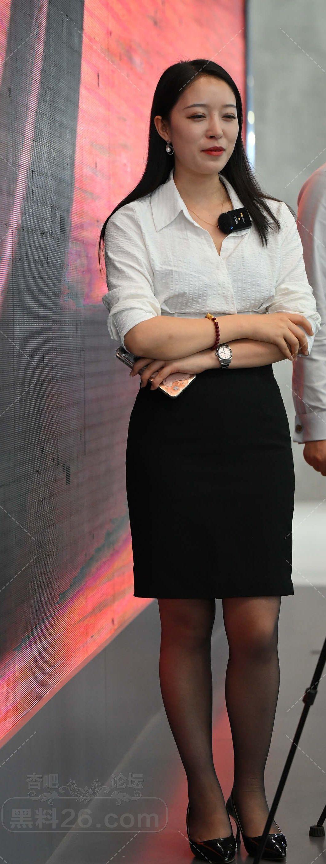 白色长袖黑色短裙长发美女售车员现场直播卖车【10P】