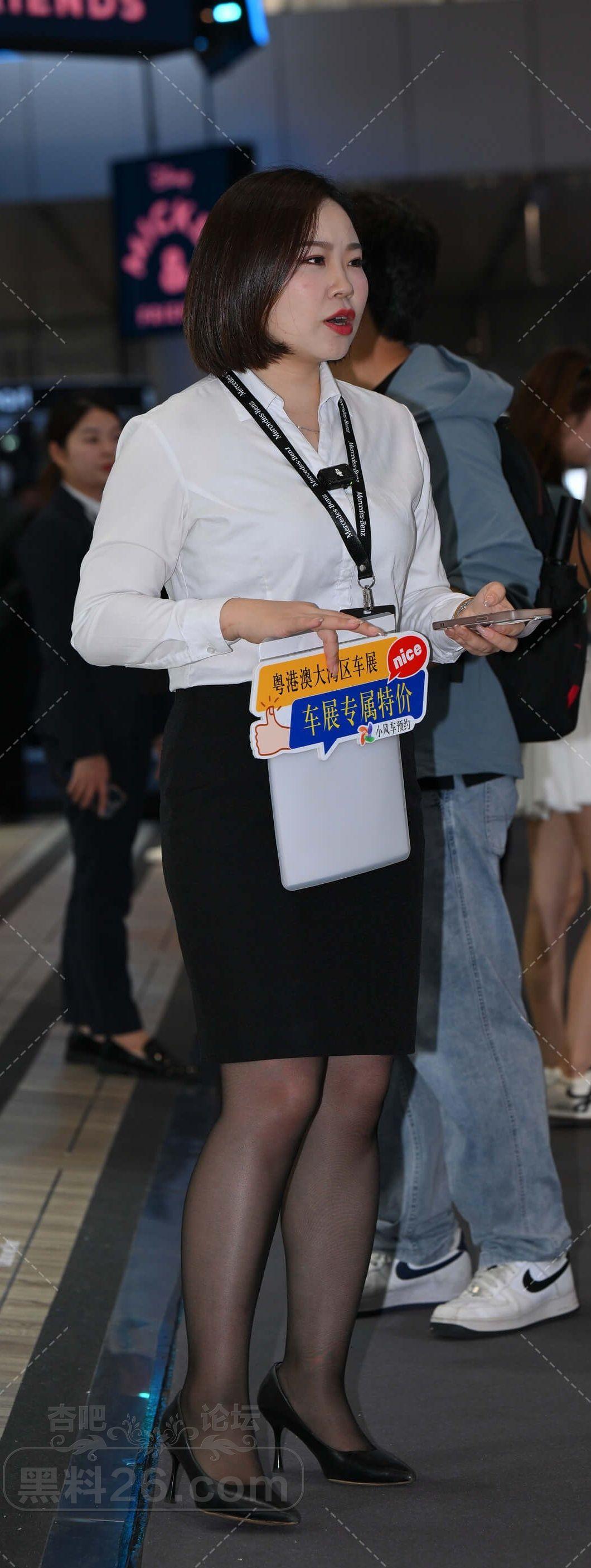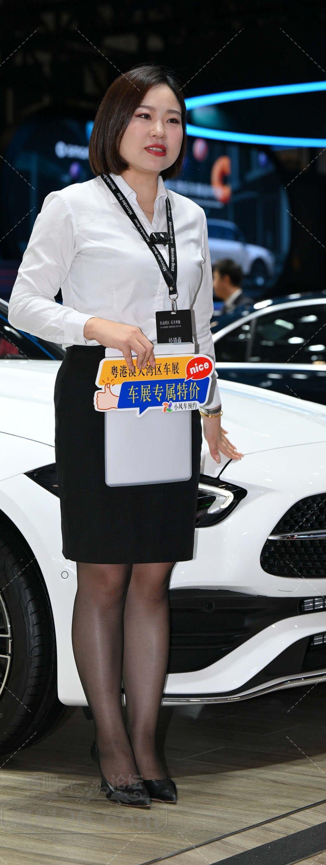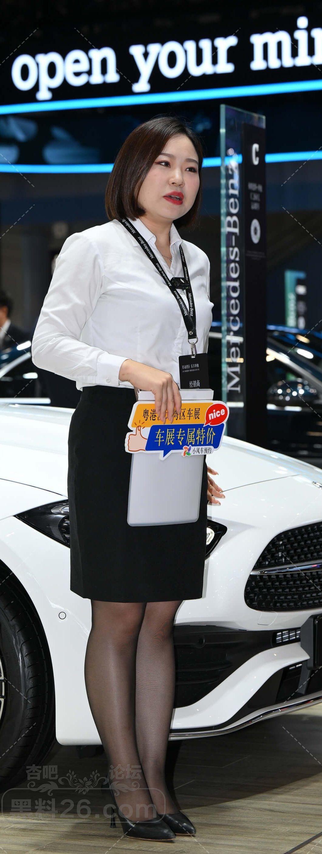白衫黑色短裙奔驰短发女售车员黑丝美腿不错【10P】