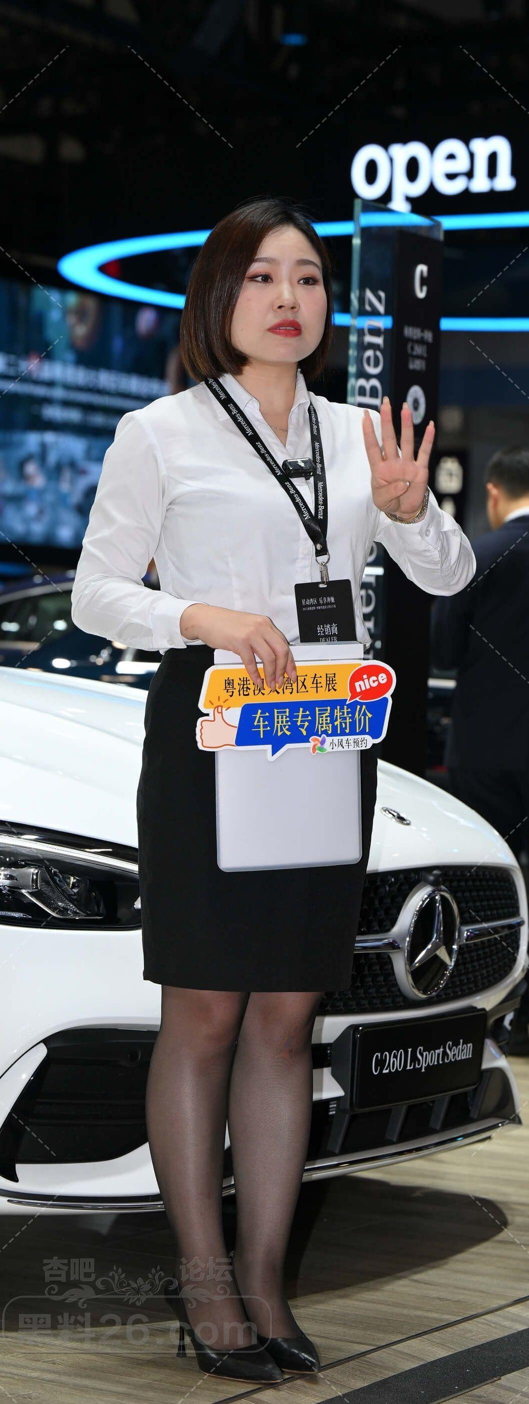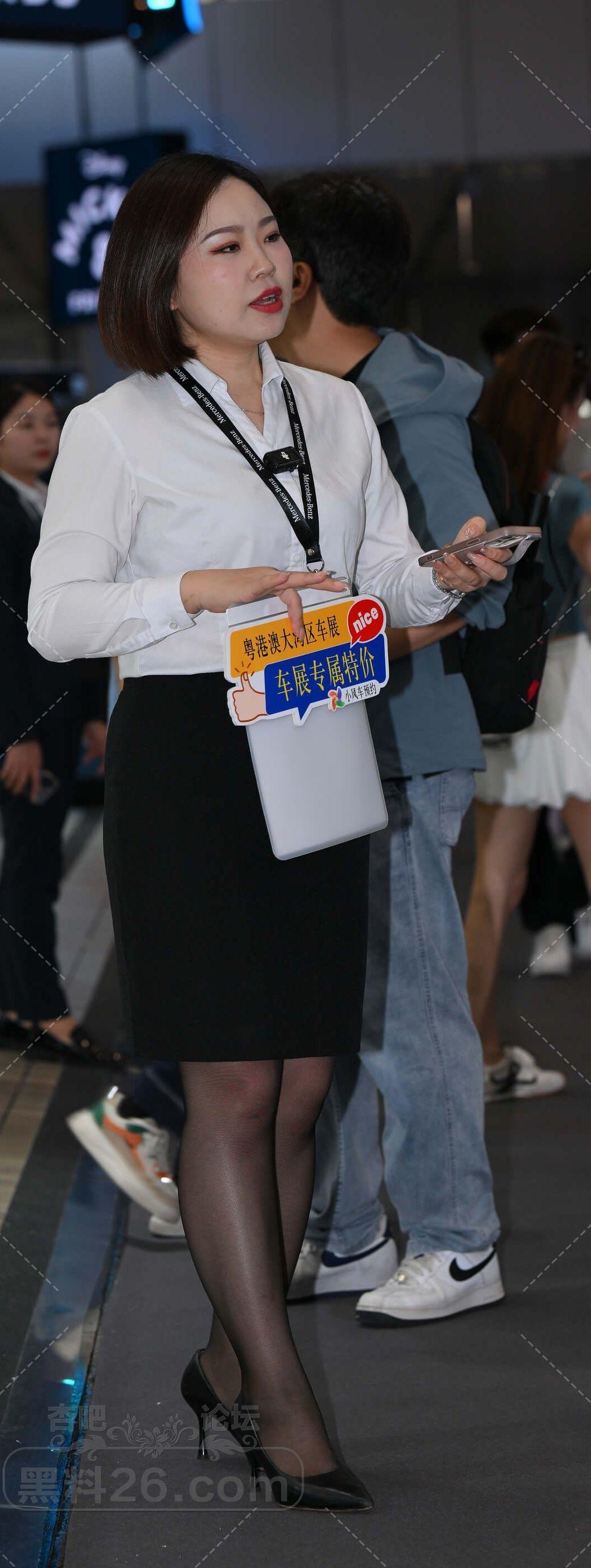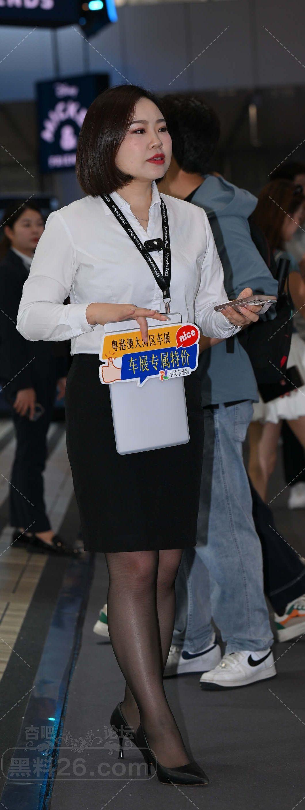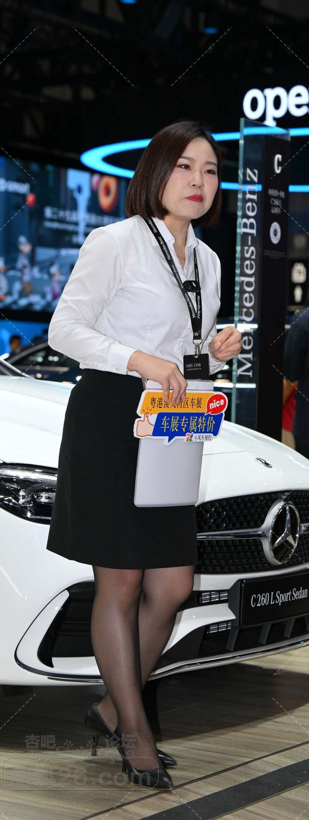 白衫黑色短裙奔驰短发女售车员黑丝美腿不错【10P】