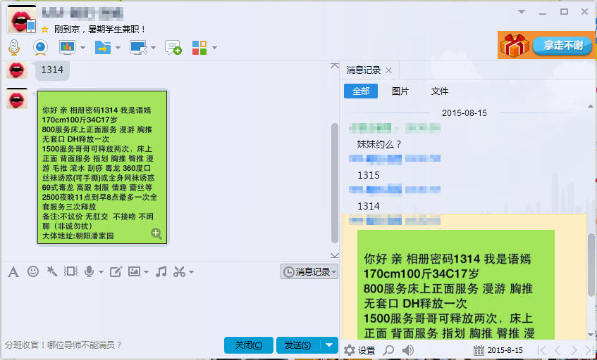【寻欢地址】:朝阳潘家园 【服务项目】:陪浴,漫游,胸推,丝袜诱惑,口活,大活 【小姐数量】:1 【小姐年龄】:16 【小姐外形】:身高170,胸围36B,体重95 【价格一览】:800/次,1500/两次 【环境设备】:中上 【安全评估】:安全 【营业时间】:妹妹有时间 【联系方式】: 获取联系方式的会员在验证楼凤的过程中拍照带自己ID和楼凤的照片并分享心得、,论坛将会有 RMB奖励!详情点击查看! 【详细介绍】:几天前得到的一个小道消息,说有个16岁的学生妹到北京兼职来了。刚刚初中毕业的,出来打工了,也是家里经济条件不好。如此嫩女没入红尘,虽然可惜,但对于广大狼友来说绝对是福音,毕竟像这种童子鸡现在可是稀罕物。所以我也赶紧要来了联系方式,不过开始的时候,加她没反应,加了好几次,等了好几天,终于有回音了,我赶紧确认了一下情况,果然不虚。以小狼这身经百战的经验判断,这妞值得一操,于是便事不宜迟的约之。 一路上的心情可以用万分期待来形容了,老实说,小狼我还真没玩过初中生,所以紧张又激动。到了地方,环境还蛮好的,进房间就看到了小妹,我勒个去,好嫩,从面相上判断,应该就是只有15来岁吧,妹妹个子还很高,有170了,这个是我没想到的,而且身材发育的很完美,前凸后翘的,线条非常的棒。妹妹长的真的好纯,青涩的美丽,有点小龙女的感觉,不过嘴巴还是挺甜的,也会笑着聊天,给人感觉性格很好。 看到如此小嫩鸡,我脑海中止不住邪恶的想法。试探着摸摸妹妹的小手,妹妹没拒绝,又搂搂她的腰,还是没拒绝,最后把手伸到她衣服里面,妹妹的脸蛋马上就红了,但还是没拒绝,嘿嘿,看来小姑娘还是很适合调教的。一声令下,脱掉衣服,一起去洗澡,妹妹轻柔的陪浴,我也给她洗小B,她舒服的发出呻吟。然后她很认真的给我洗JJ,还蛮有小女友的风范的。擦干到床上,妹妹想主动给我服务,被我一个翻身在下,我看到她的乳头很粉嫩,实是忍不住想亲,只亲了几下,妹妹就连说受不了了,再看她的小B,还真的马上就出水了,跟处女似的。 我不敢太强来,毕竟人家年纪还小,还是需要爱护的,就叫她给我KH,妹妹技术还算过关,没有明显齿感,关键是态度深得我心,很耐心很完美,再加上清纯的小电眼,我居然还把持不住了,一声令下妹妹给我带上TT,翻身上马,刚一进去,我和妹妹都忍不住啊了一声,我去,真是有如处子开苞,先痛后爽,妹妹这小B紧的简直不像话,不过后面就舒服多了,妹妹的水超多,滋润了小弟弟,渐入佳境,妹妹还主动配合着换了几个姿势,但我觉得还是传统式最有征服的感觉,有点像强奸,哈哈,邪恶了。爽泻后,妹妹还帮忙清理,非常懂事儿的女孩儿。 【附带照片】: