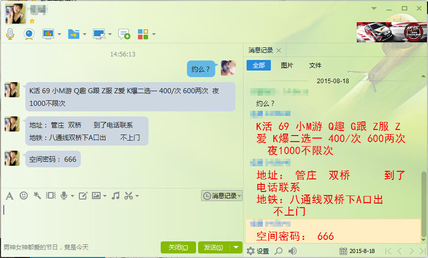 【寻欢地址】:八通线双桥A口出 【服务项目】:陪浴 口活 69 漫游 制服 做爱/口爆 【小姐数量】:1 【小姐年龄】:28 【小姐外形】:身高168,体重100, 三围C 【价格一览】:400 【环境设备】:中上 【安全评估】:安全 【营业时间】:妹妹有时间 【联系方式】: 获取联系方式的会员在验证楼凤的过程中拍照带自己ID和楼凤的照片并分享心得、,论坛将会有 RMB奖励!详情点击查看! 【详细介绍】:周六去搞了坛子里面看到的一个内蒙少妇,其实当时看照片倒感觉还行,没有往极品那方面期待,只是觉得价格地道,然后内蒙女人听说都是很猛的,我也想见识下。在QQ上说好,然后过去看到本人,觉得还不错,比照片上的要年轻点,少妇型的,那眼神一看就是欠操的货,相当的有风情。 妹妹很热心的给我脱衣服,然后洗澡,有陪浴,态度非常好。期间各种说笑,反正让人觉得很亲近。内蒙的女人还真挺豪爽的。到了床上,躺好,妹妹给我漫游,这口舌,舒服。妹妹其实服务花样也不多,但每一样都做的特别细致,投入了真感情的模样,仿佛就是把我当情人一样,还要舔我脚,我口味没那么重,汗。 口活做的很爽,非常有经验,然后还叫我摸她的奶,那我也就不客气了,实在太骚了,我把妹妹的奶子都搓的滚烫,妹妹直说好爽,对骚逼就得这样干,69的时候也是醉了,感觉都像我服务她了,到后面开插,干了20几分钟,各种姿势,妹妹的配合度非常高,很会做的那种,耐操的货,最后女上被征服,靠! 【附带照片】:
