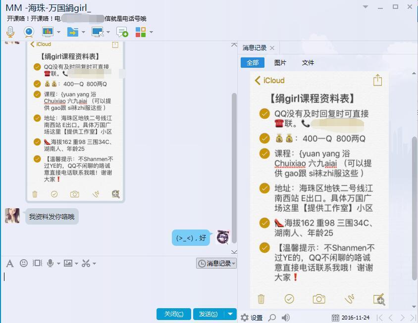 【寻欢地点】:海珠区 具体万国广场旁边 【信息来源】:网络 【服务项目】:鸳鸯浴 丝袜诱惑 口活 爱爱 【妹妹数量】:没问 【环境设备】:和小姐谈 【营业时间】:这个需要自己问 【价格一览】:400 【安全评估】:不去最安全 【服务星级】:70 【重点推荐】:省略 【寻欢细节】:("▔□▔)从另一个妹子那获得的信息,身材不错,空间有视频 【总体评价】:还可以 【联系方式】: